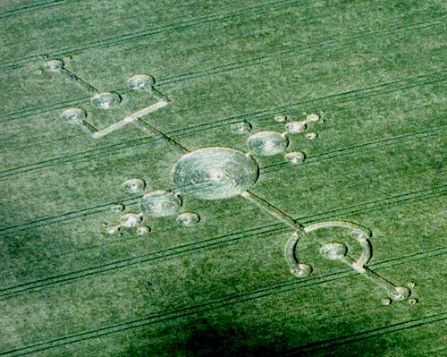 centre circle approximately 60 feet diameter. The two side arms lead to