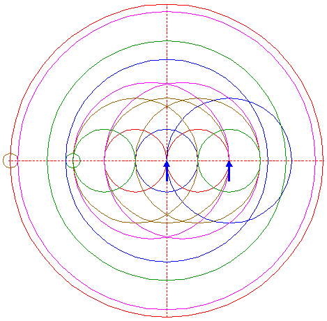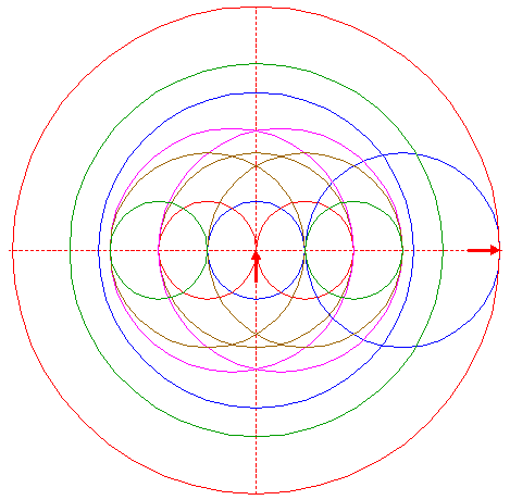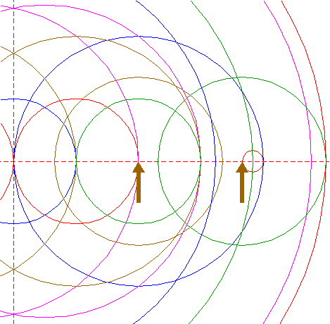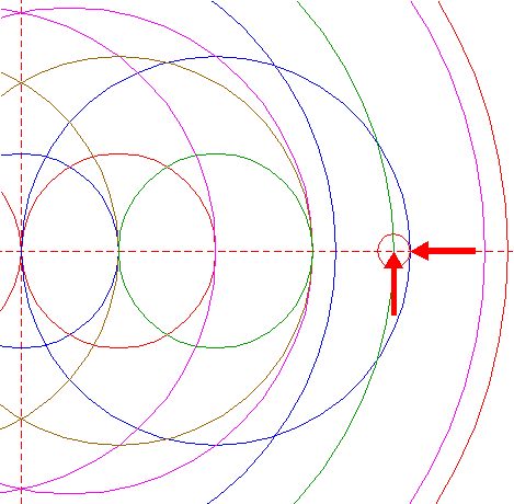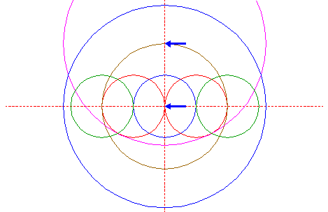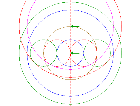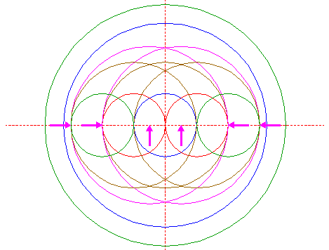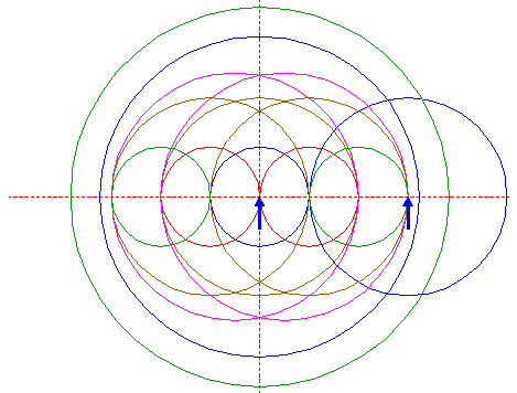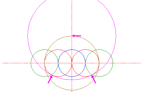 | Copy circle 4 to the righthand intersection of righthand circle 2 and the horizontal centerline. |