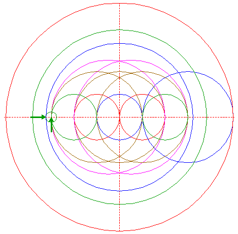| Copy circle 13 to the lefthand intersection of circle 12 and the horizontal centerline. |