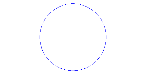 | 1. |   | Draw a circle. Draw and extend the horizontal and vertical centerlines. |