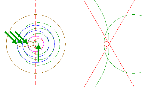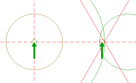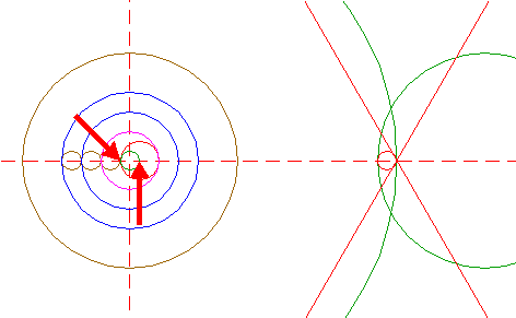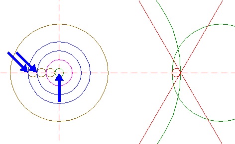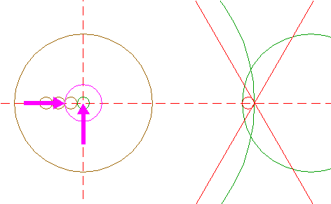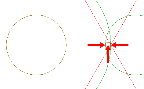 | 17. |   | Construct a circle centered at the righthand intersection of circle 13 and the horizontal centerline, tangent to circle 13 at the lefthand side. |