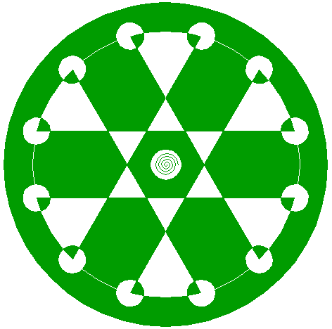 | 2. |   | Create the inscribed regular six-pointed star of circle 1, by constructing two inscribed equilateral triangles, one pointing up, one pointing down. |