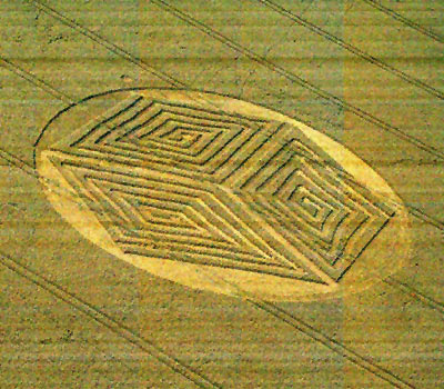 circle, giving the impression of a 3D cube. The labyrinthine paths are