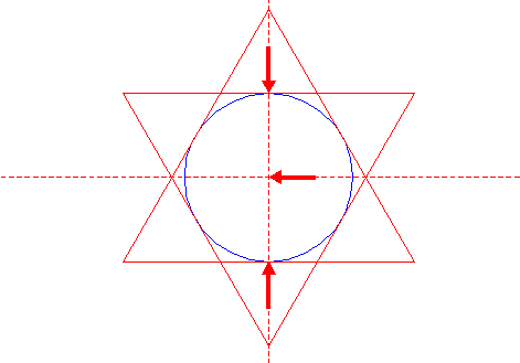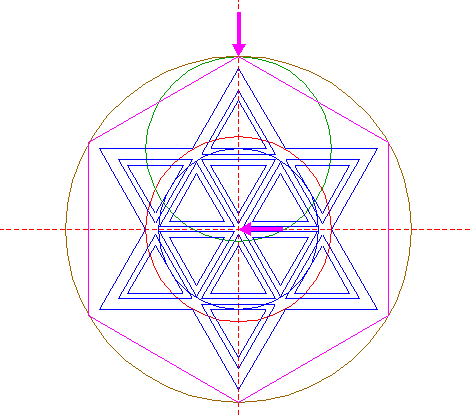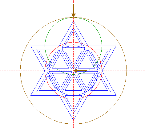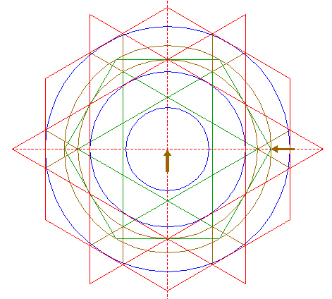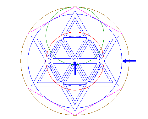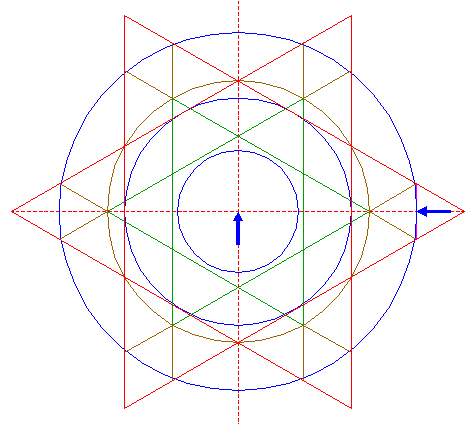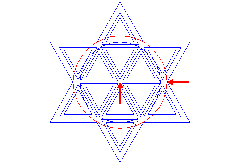 | Construct two circumscribed equilateral triangles of circle 4, one pointing up, one pointing down. |