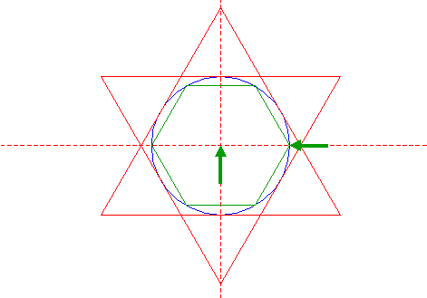 | Construct two circumscribed equilateral triangles of circle 10, one pointing up, one pointing down. |