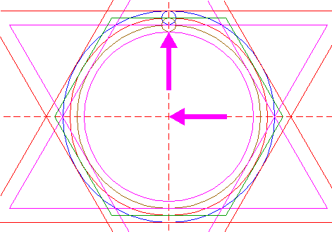 | Construct the circumscribed hexagon of circle 7, pointing to the right. |