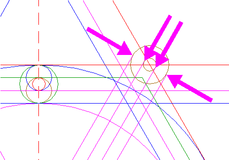 | Copy circle 12 to the upper angular point of upper right "diamond 24", and move this circle to its lower intersection with line 42, see detail. |