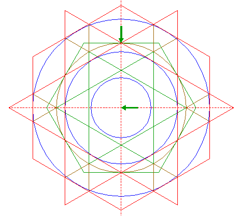 | Construct the six inscribed circles of hexagons 32. |