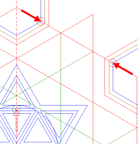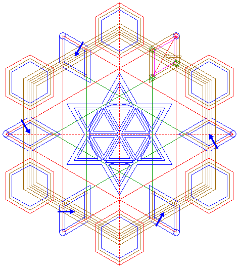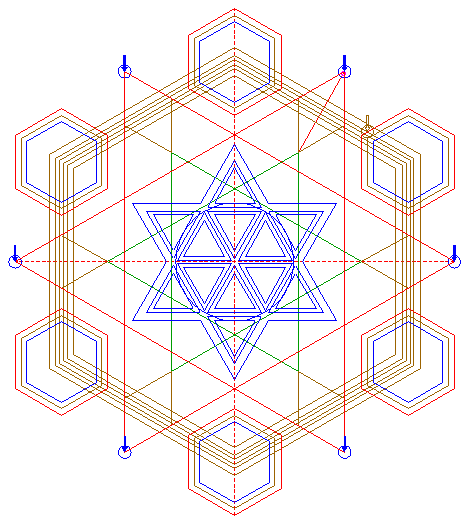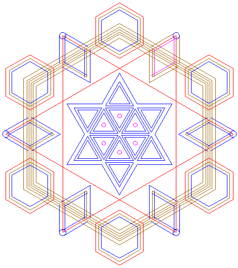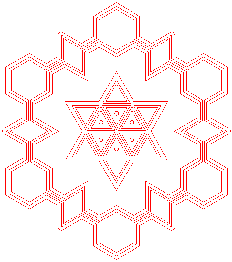 | Copy circle 30 five times, to the other angular points of hexagon 27. |