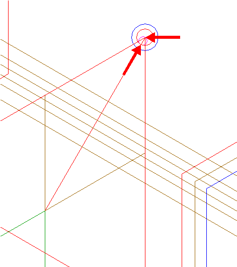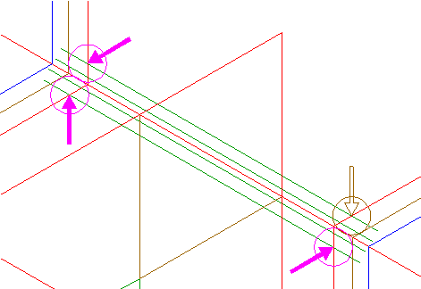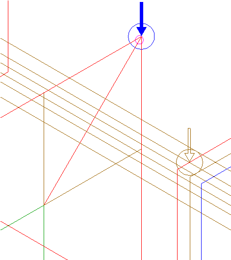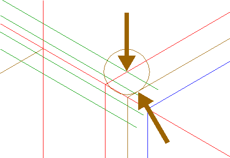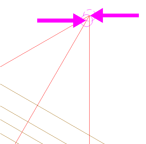 | Draw the connecting line between the intersections of the rightmost extensions 24 and right-pointing triangle 22. |