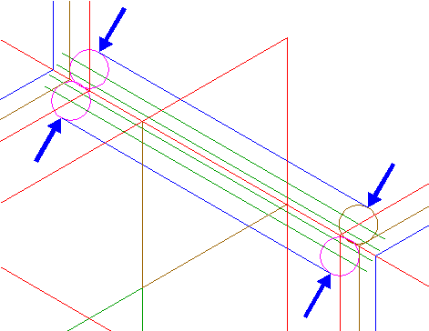 | Draw four parallel lines, tangent to circles 37 at both sides, see detail. |