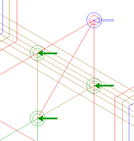 | Copy circle 39 six times, to all angular points of triangles 22, see detail. |