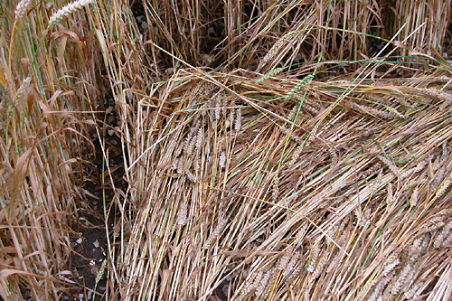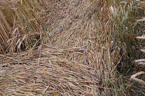 the crop had been pushed down in a V-shape. I lifted the crop in many