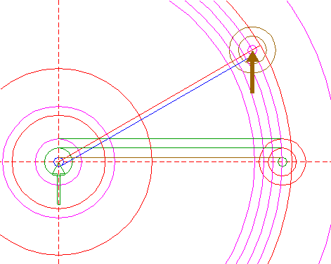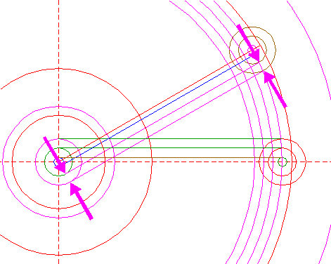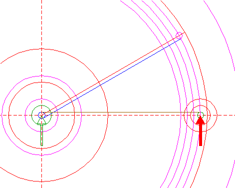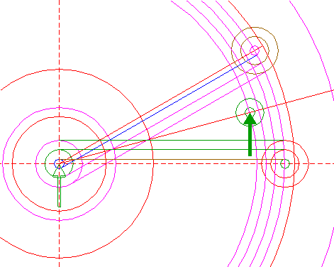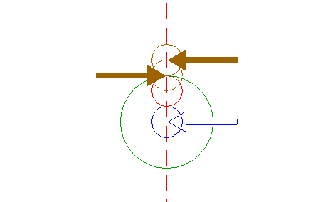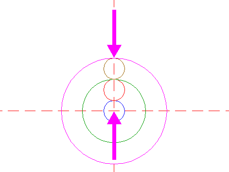 | Copy circle 1 to the upper intersection of circle 2 and the vertical centerline, and move this circle to its own corresponding intersection. |