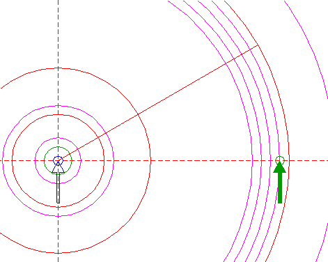 | Copy circle 1 to the righthand intersection of the outermost circle 15 and the horizontal centerline. |