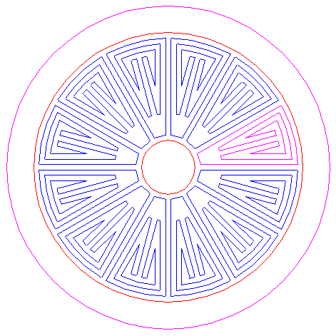 | Copy pattern 35 eleven times, and distribute the patterns (twelve in total) evenly around the common center, as shown (that means, repeat steps 22 through 35 for the other eleven sections). |