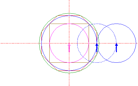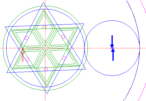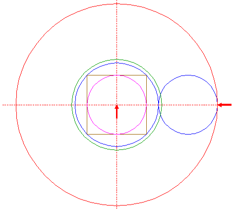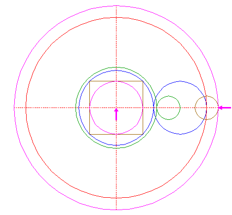 | 6. |   | Copy circle 5 to the righthand intersection of circle 1 and the horizontal centerline, and move this circle to its own corresponding intersection. |