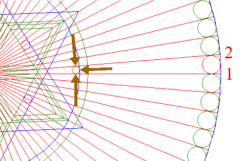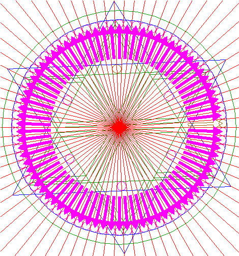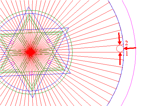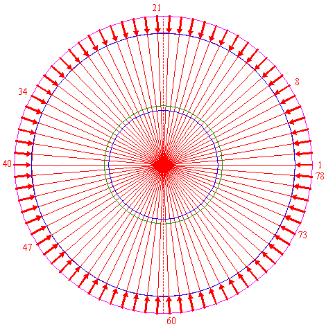 | 33. |   | Copy circle 32 to all other 77 sections at corresponding positions. That means, repeat step 32 for all other pairs of adjacent rays 12. |