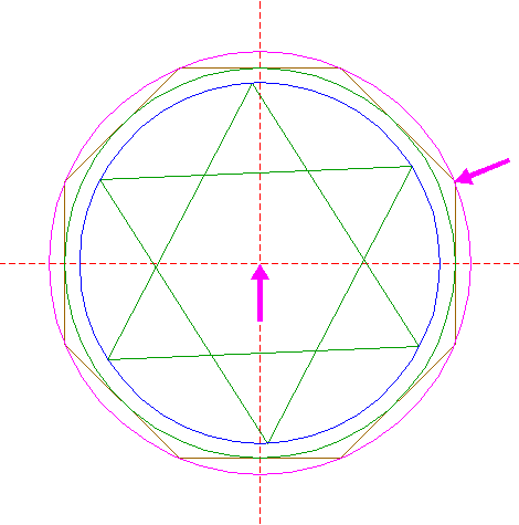 | 16. |   | Construct two inscribed equilateral triangles of circle 15, one pointing at ray 12 nr. 21, the other at nr. 60. |
