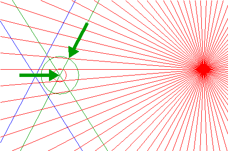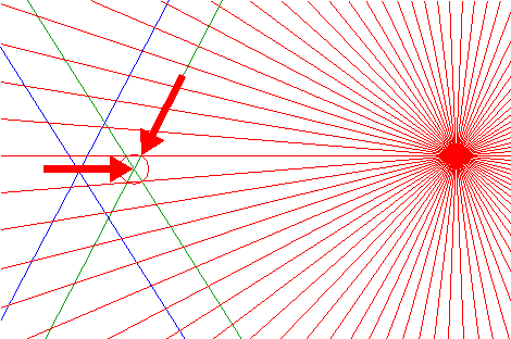 | 12. |   | Draw all 78 rays from the center of circle 7 to the angular points of polygon 11. Number the rays 1 through 78, counterclockwise, starting at the rightmost one. Some examples are shown. |