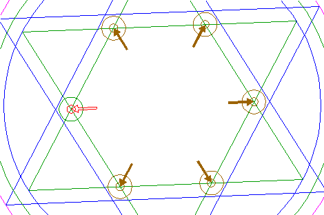 | 22. |   | Repeat step 21 five times, for the other sides of "hexagon 13", as shown. |