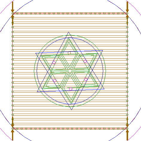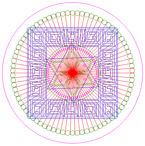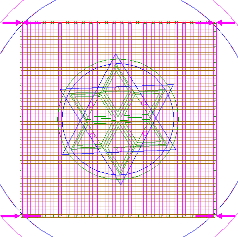 | 28. |   | Divide all four sides of square 27 into 25 equal sections, and copy circle 17 100 times, to all dividing nodes, and to the angular points. |