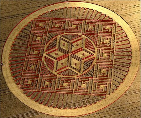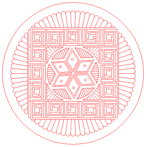 | 31. |   | Create the sixteen square patterns around the central circular motif, as seen in the formation, by removing all irrelevant parts from lines 29 and 30. |