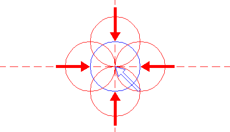 | Copy circle 1 four times, to the intersections of circle 1 and the horizontal and vertical centerlines.