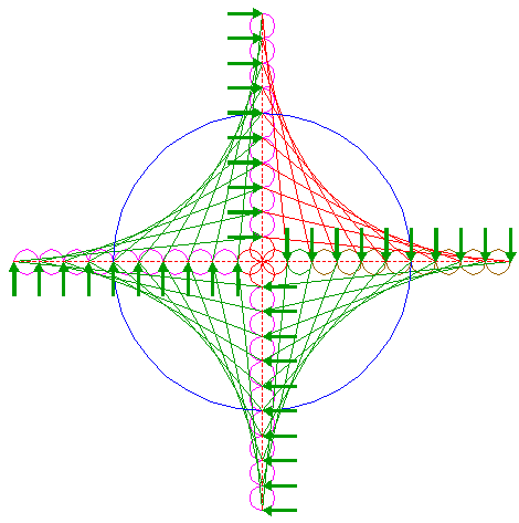 | Copy circle 9 three times, to the corresponding intersections in the other three quadrants.