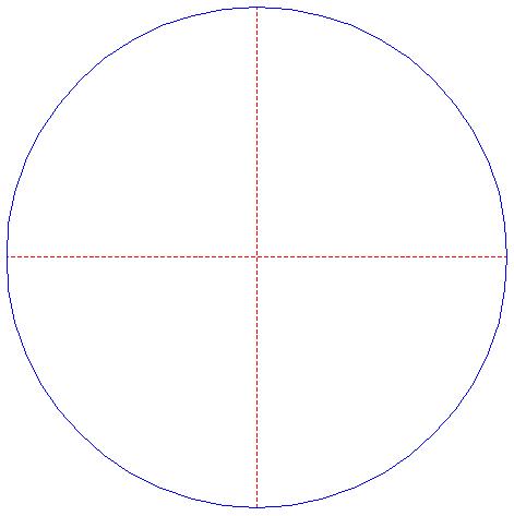 | Draw a circle. Draw the horizontal and vertical centerlines. |