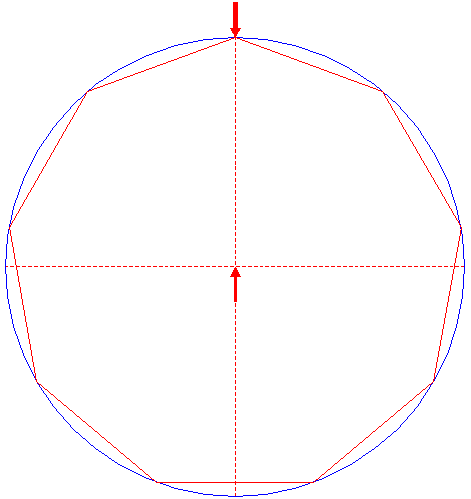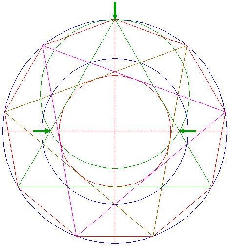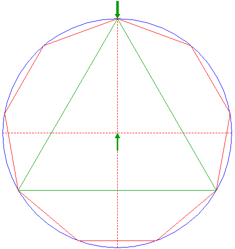 | Construct the circumscribed nonagon of circle 31, pointing down. |
