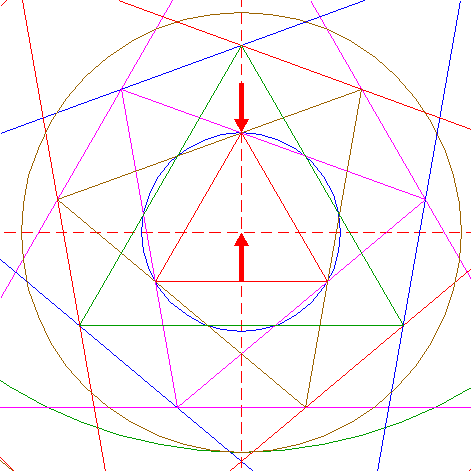 | Finish the inscribed equilateral triangle of circle 30, by drawing the connecting line between its intersections with (the upper sides of) triangle 3. |