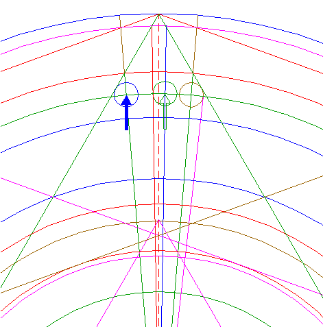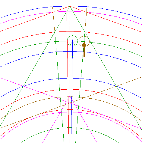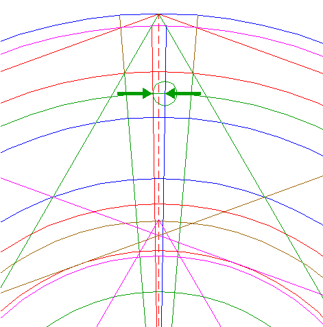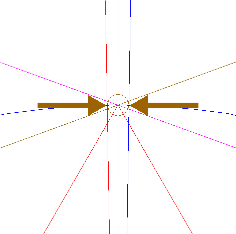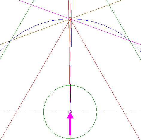 | (For clarity, the results of some previous steps are removed temporarily) Construct a (very small) "two-points" circle, the two end-points of a centerline of which coincide with the intersections of circle 16 and lines 41 and 42. See detail. |