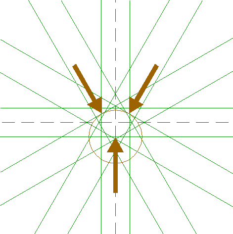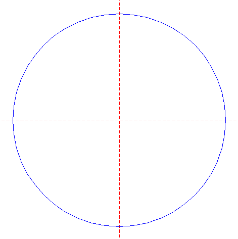 | Draw a circle. Draw and extend the horizontal and vertical centerlines. |