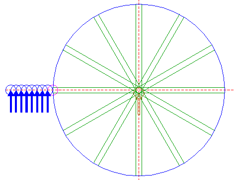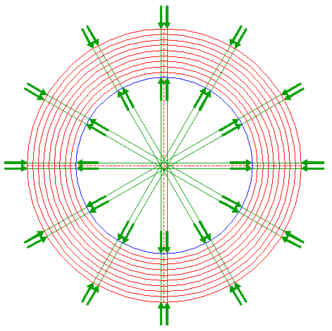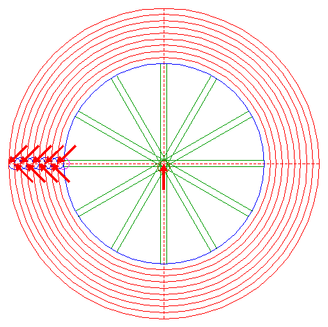 | Draw six rays of polygon 2, from the center of circle 1 to angular points nrs. 2 through 7. |