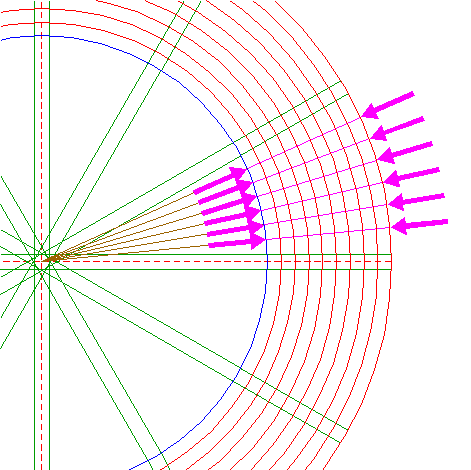 | Extend rays 9 up to outer circle 7. |