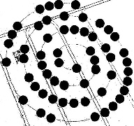 The 23 groups of circles in the Yatesbury Field spiral can be shown in this
