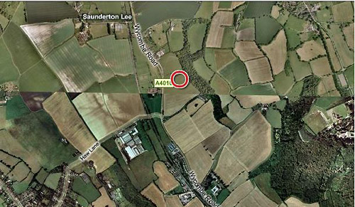 Saunderton, Bucks, SU 812 991, adjacent A4010 road. circle is