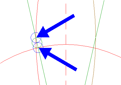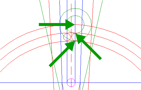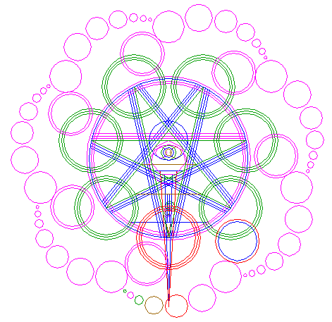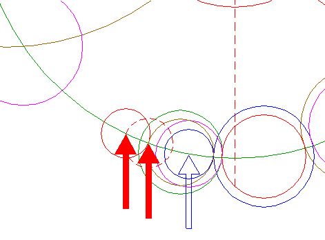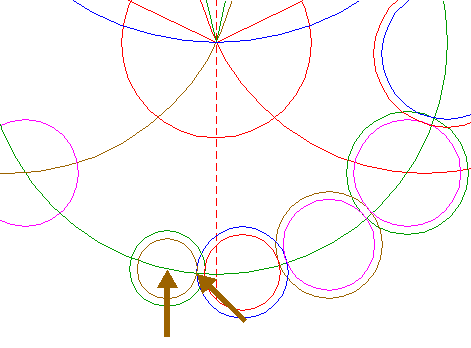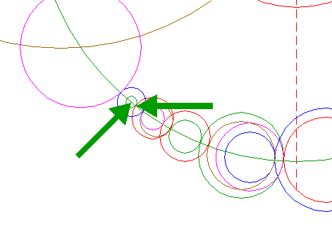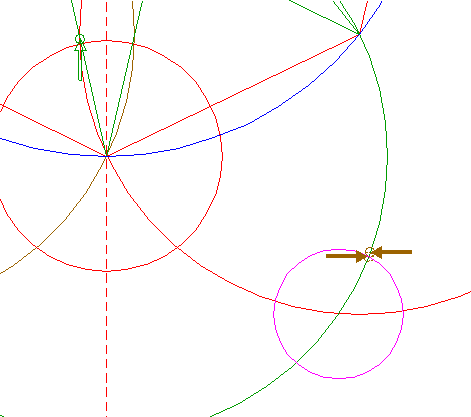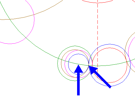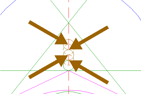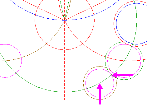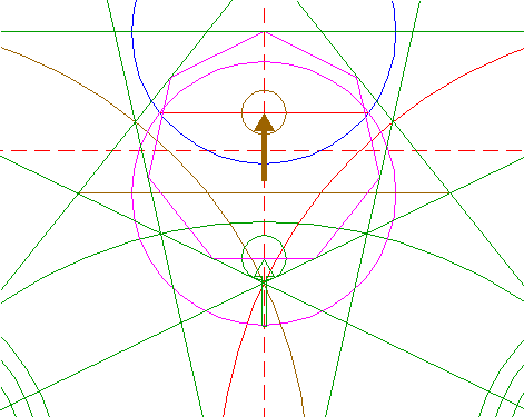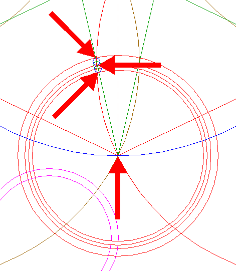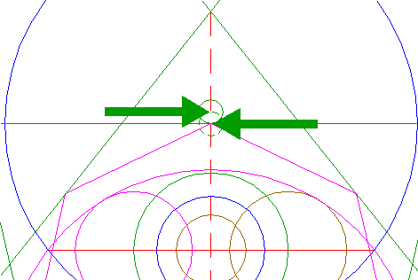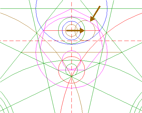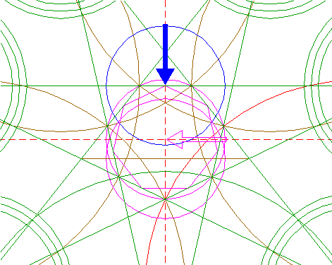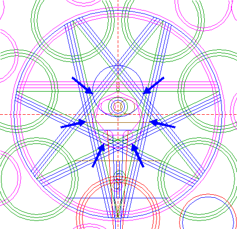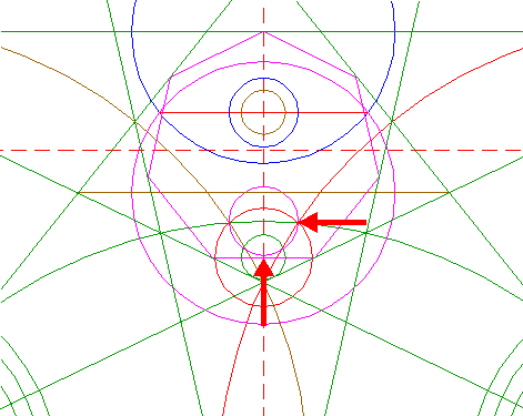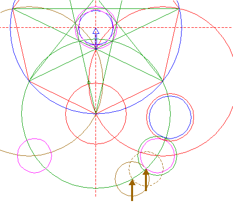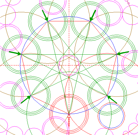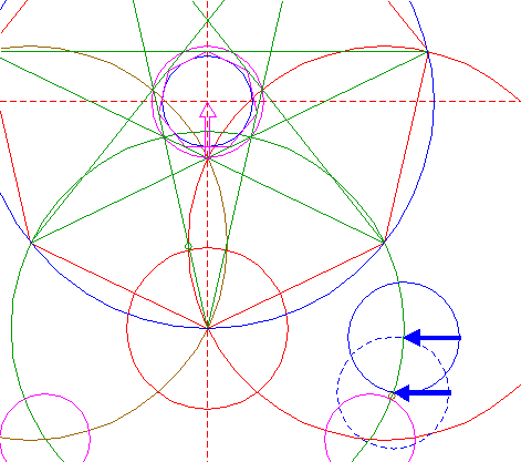 14. | ![]() | Copy circle 13 to the upper intersection of righthand circle 10 and circle 8. Move this circle (copy and delete original) to its own corresponding intersection with circle 8. See detail. |