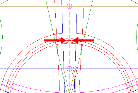 66. | ![]() | Draw two lines, parallel to the vertical centerline, tangent to circles 65 at both sides. |