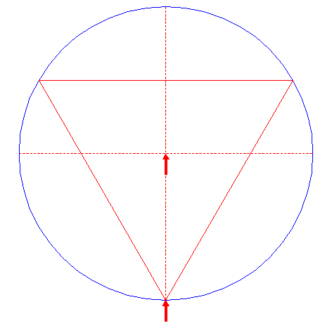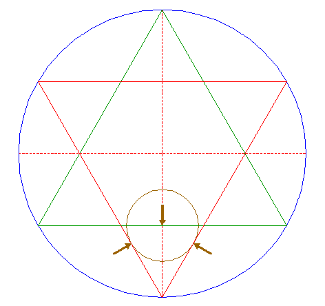 | Construct a circle centered at the mid-point of the lower side of triangle 3, tangent to both lower sides of triangle 2.