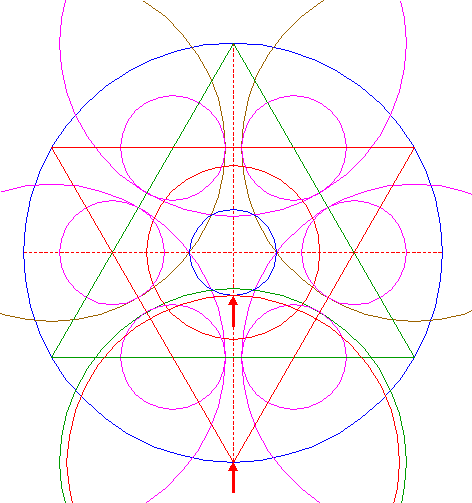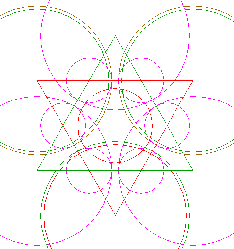 | Copy circle 4 six times, to the six mutual intersections of triangles 2 and 3.