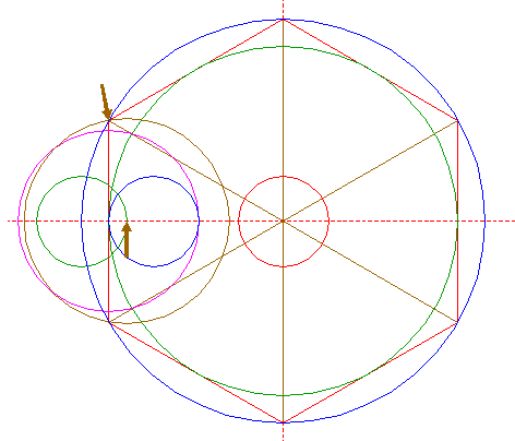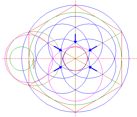 | Copy circle 6 to the lefthand intersection of circle 1 and the horizontal centerline. |