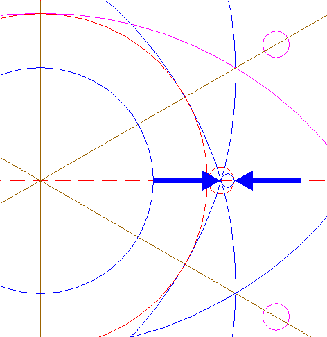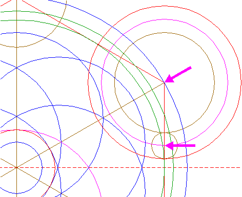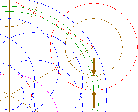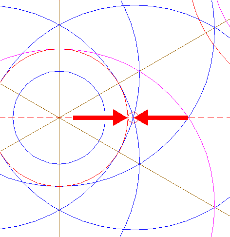 | Construct a (small) "two-points" circle, between the center of circle 22 and its righthand intersection with the horizontal centerline. |