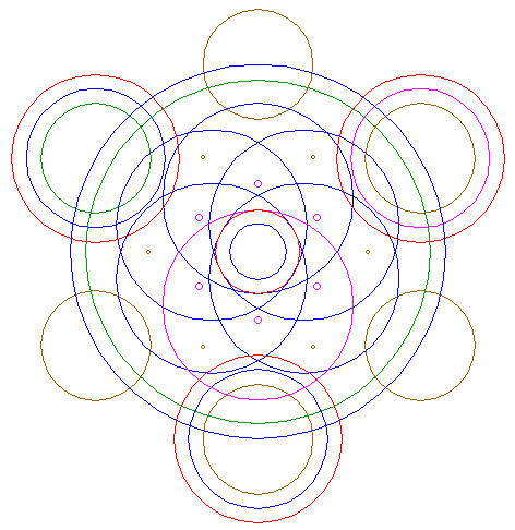 | Copy circle 5 three times, to the upper lefthand and righthand and the lower angular points of hexagon 2. |