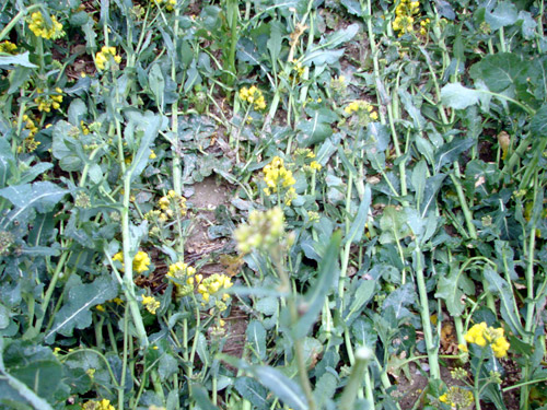 of the downed rape-seed (Canola) plants seriously damaged around the