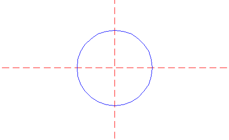 | Draw a circle. Draw and extend the horizontal and vertical centerlines. |