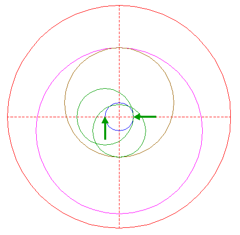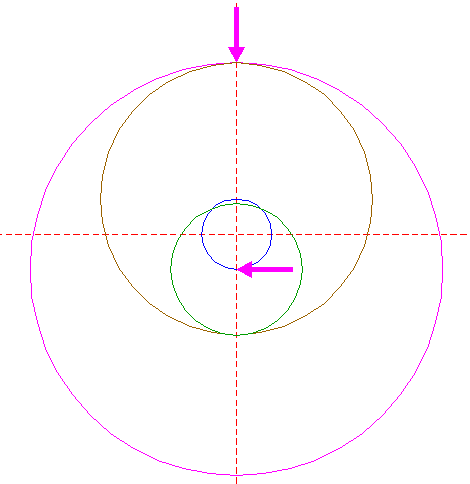 | Copy circle 1 to the lower intersection of circle 5 and the vertical centerline. |