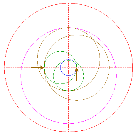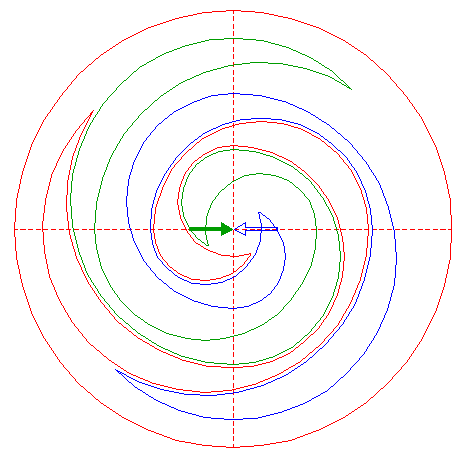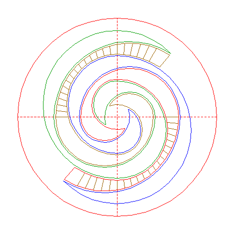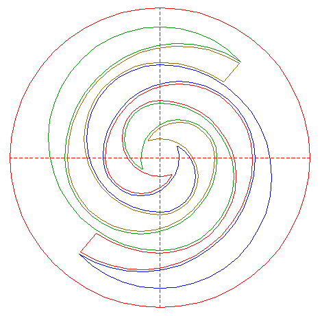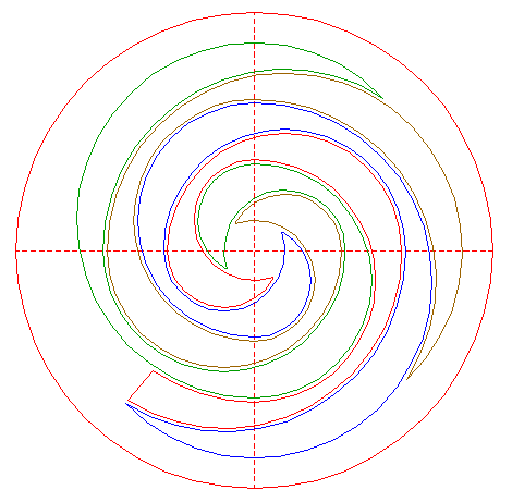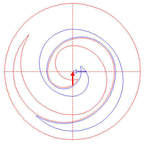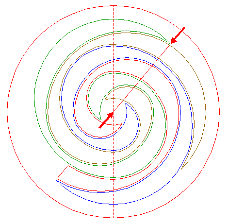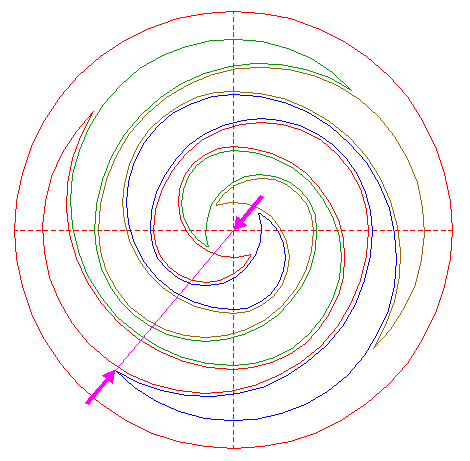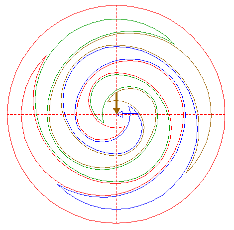 | Taking the center of circle 7 as a reference point, copy spiral 11, and rotate it over 180°. |