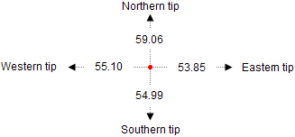 circle measured at the central point is: 001.80407 ° W.